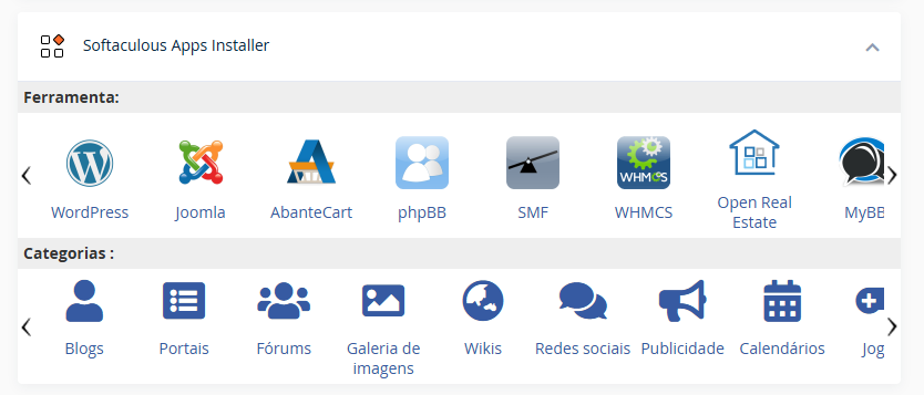 O Softaculous dispõem de inúmeros scripts pré-configurados, e que são relacionados a plataformas de blog, e-commerce, cms tal como WordPress, Joomla, Magento e etc.