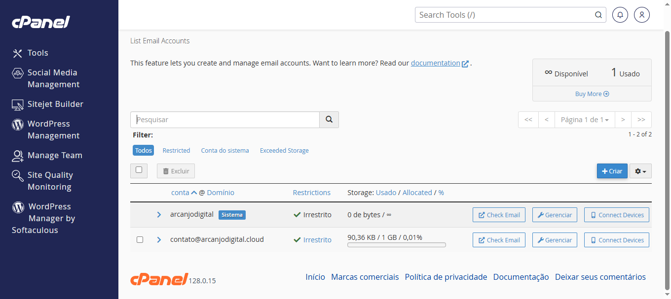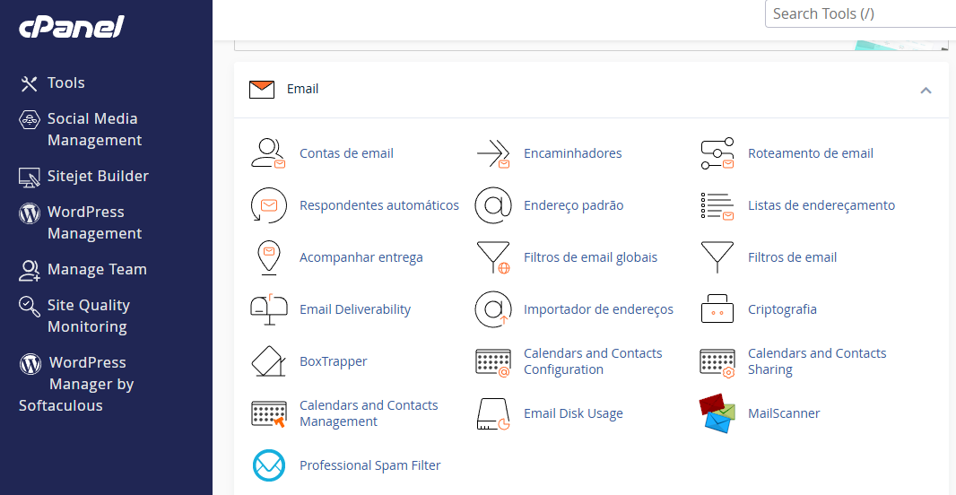 2- A Categoria E-mail é praticamente a primeira categoria do cPanel, fica no inicio.